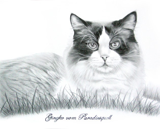 Katzenportrait von Ragdoll Gingko - Bleistiftzeichnung, 40x50cm